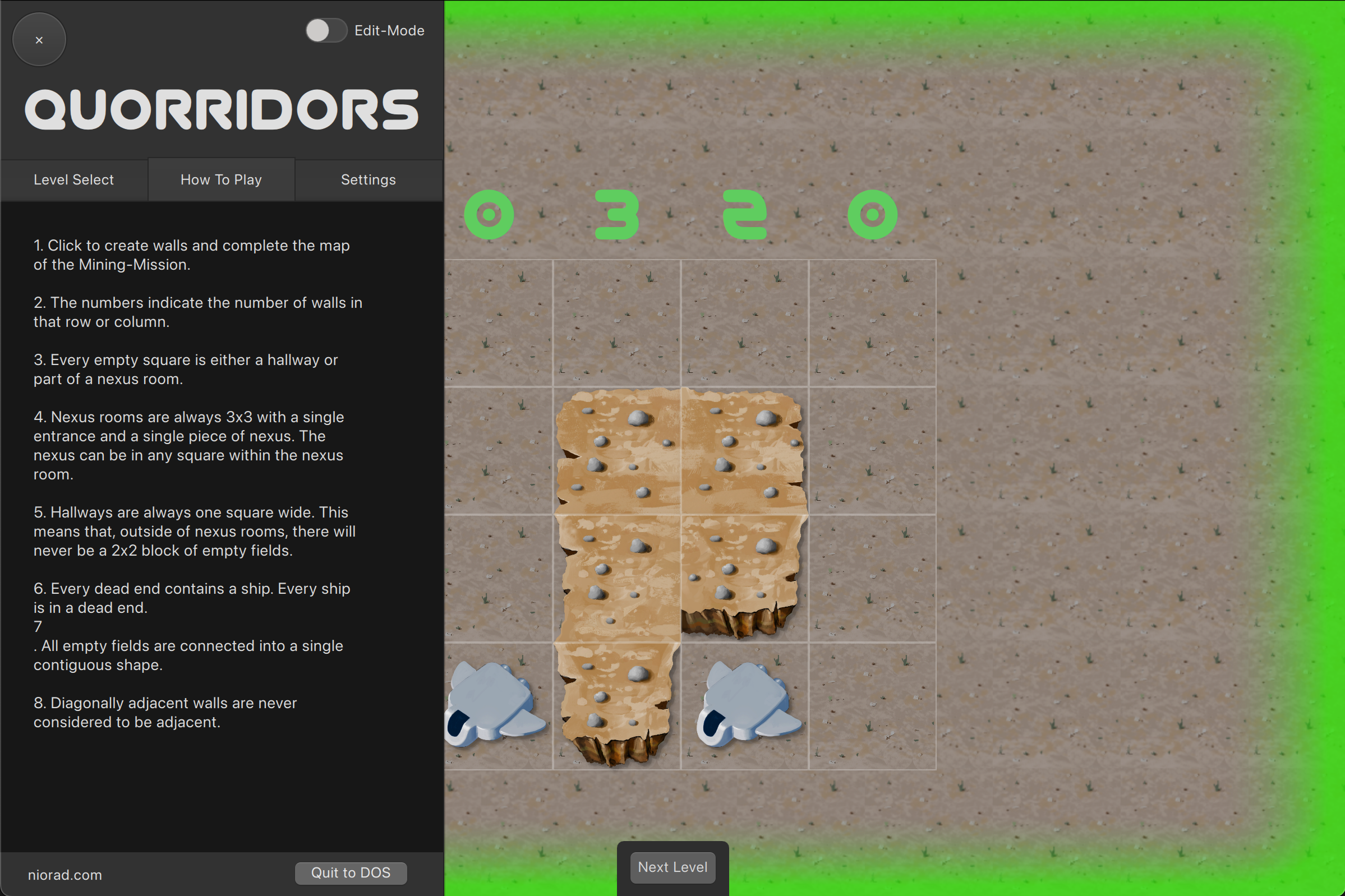 Quorridors update: A “next level” button and a winning-state for the screen.
